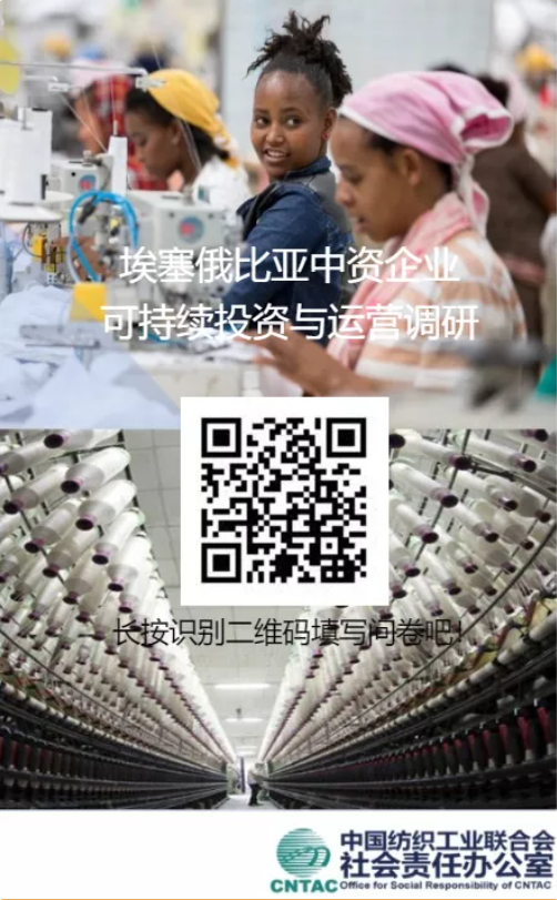 赴埃塞俄比亞投資的紡織服裝企業可識別以下二維碼填寫問卷,來幫助我們了解赴埃塞投資企業在經營過程中的挑戰和實際困難,在此基礎上為企業爭取有利的發展環境。