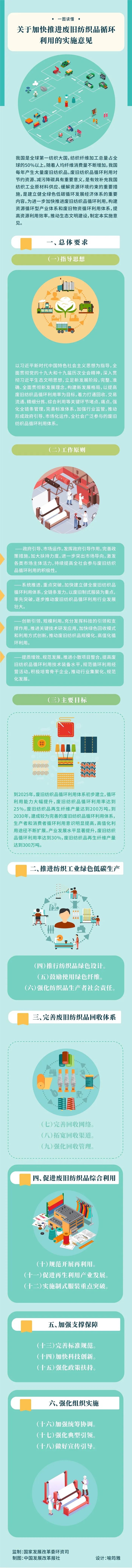 為進(jìn)一步加快推進(jìn)廢舊紡織品循環(huán)利用,構(gòu)建資源循環(huán)型產(chǎn)業(yè)體系和廢舊物資循環(huán)利用體系,提高資源利用效率,近日,國(guó)家發(fā)展改革委、商務(wù)部、工業(yè)和信息化部聯(lián)合印發(fā)《關(guān)于加快推進(jìn)廢舊紡織品循環(huán)利用的實(shí)施意見(jiàn)》(發(fā)改環(huán)資〔2022〕526號(hào),以下簡(jiǎn)稱《實(shí)施意見(jiàn)》)。