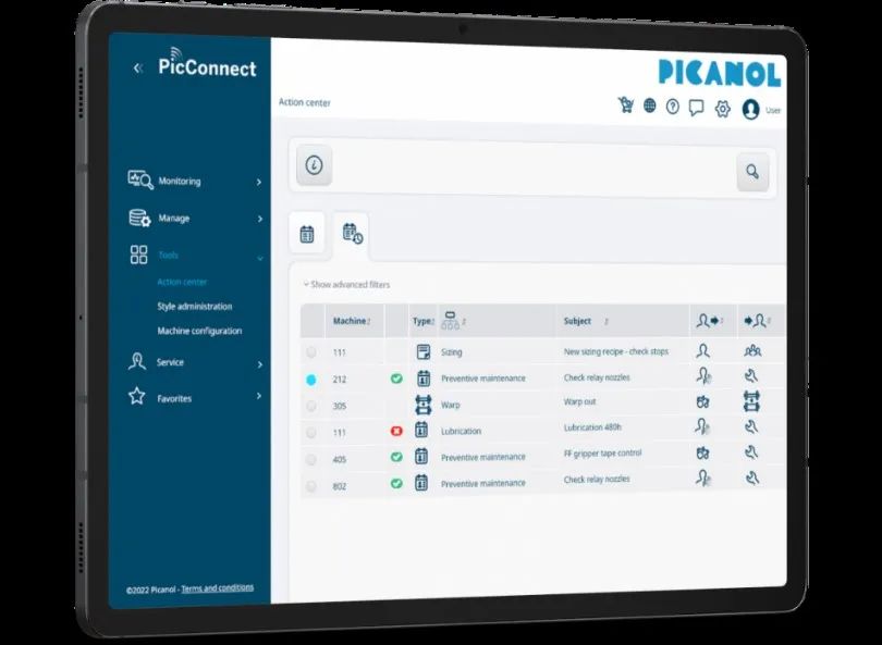 在通過智能轉型推動制造強國建設新時期,實現“數字化、網絡化、智能化”制造成為紡織裝備制造業發展的新趨勢。同時,隨著勞動力成本的持續增加和用戶對品質要求的逐步提升,紡織企業對織造設備的自動化、智能化水平需求也越來越迫切。從本屆展會的展出情況來看,多家企業都在積極利用各種電子控制平臺提供設備的遠程監控和服務,同時通過數字的積累與云平臺的建設與應用,為智能化運行打下基礎。例如,必佳樂將旗下數字化工具和數字化服務集中在全新的數字化平臺PicConnect中,該平臺集生產監控、能耗監控、品種管理、網上商城等功能于一體,能使工人快速改變織機的參數設定,實時監控織機狀態并跟蹤生產,關注織機能耗,同時新增了報警、訪問控制、行動中心和監控數據導出等功能;意達最先進的工廠監控系統My-Weave™,可以提供紡織品生產管理參數;所有的范德威爾機器都可以通過云計算連接到“TEXconnect”監控系統,更符合“工業4.0”概念;多尼爾配備的DoXNet軟件,可以將織機網絡化,并提供用戶友好的生產概覽,通過多尼爾DoXWeave控制臺,可以集中管理織機數據,并遠程訪問網絡化織機;TISS津田駒網絡支援系統,用于物聯網應用,可實現改善運轉、提高生產、預測保養的目的;約科布·繆勒所有窄幅織物織造機和標簽織機(MD 2/130除外)均經過預先配置,可集成到網絡中,并可通過窄幅紡織行業的數字化門戶“mymuenet®”進行連接,這些機器還標配了MLC機器控制系統和MÜDATA®M系列控制平臺。