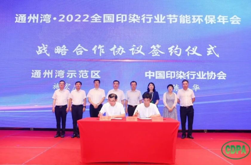 會上,為更好地推進通州灣示范區現代紡織產業園建設和發展,中國印染行業協會與通州灣示范區簽訂戰略合作協議,雙方將發揮各自優勢,整合行業優勢資源,共建綠色低碳、高質量發展示范紡織園區。