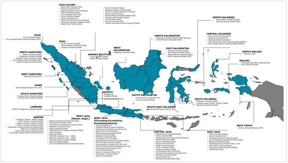 Karawang International Industrial City(KIIC):位于西爪哇省卡拉旺縣,自1992年起由日本伊藤忠商事公司與印尼金光集團聯合開發運營。園區緊鄰雅加達都會區,72%的勞動適齡人口,海陸空交通便利,水電氣等基礎設施供應穩定。目前該園區吸引了汽車、電子、消費品等行業眾多跨國企業入駐。
