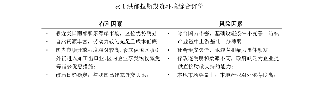 洪都拉斯紡織產(chǎn)業(yè)與美國采購供應(yīng)鏈合作緊密,對(duì)應(yīng)我國紡織企業(yè)部分海外投資需求,但考慮到其基礎(chǔ)設(shè)施落后、電力供應(yīng)不足、能源成本較高、工業(yè)基礎(chǔ)薄弱、勞動(dòng)力素質(zhì)較低以及與我國國內(nèi)紡織產(chǎn)業(yè)鏈距離較遠(yuǎn)等客觀條件,建議紡織企業(yè)深入考察,謹(jǐn)慎、全面做好投資評(píng)估和預(yù)案。