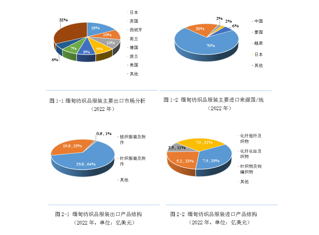 (5)我國紡織企業(yè)可結(jié)合實際,在緬甸投資發(fā)展服裝加工環(huán)節(jié),并向上游適當延伸產(chǎn)業(yè)鏈。同時,考慮到較為臨近的孟加拉國、柬埔寨等服裝生產(chǎn)大國同樣是以來料加工為主的出口模式,可根據(jù)緬甸及周邊國家產(chǎn)業(yè)合作情況,投建紡紗、織造及印染廠,合理布局,促進產(chǎn)業(yè)鏈上下游融通發(fā)展。