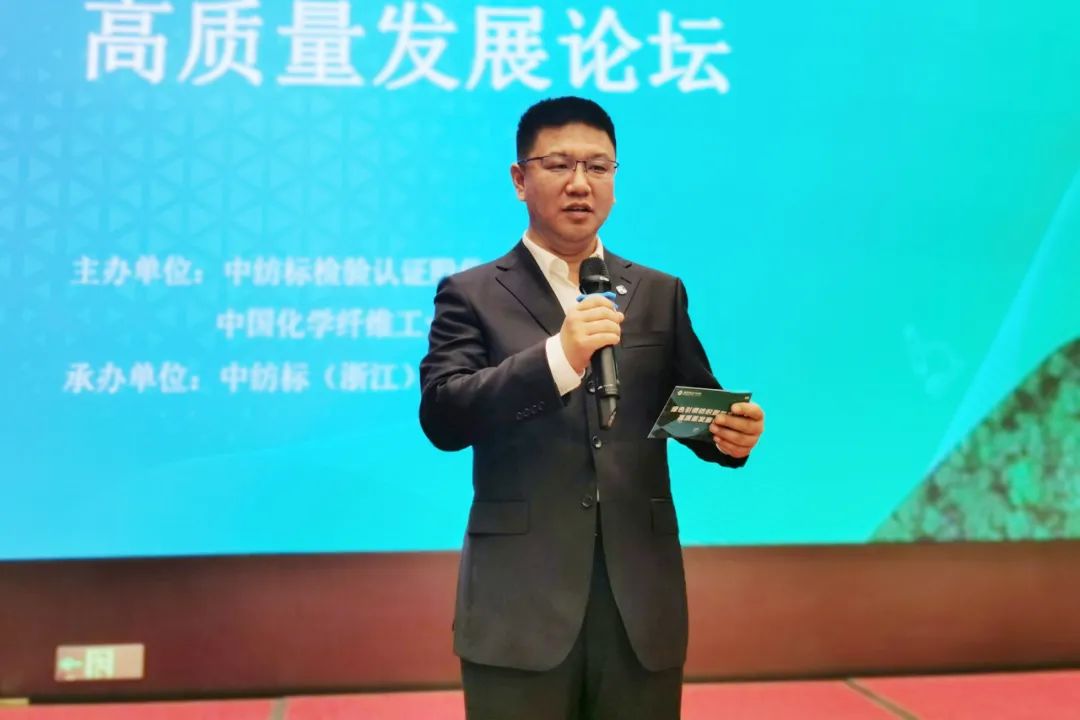 中國化學纖維工業協會副會長靳高嶺、副總工程師李德利、副總經濟師張凌清、行業發展部副主任劉世揚,中紡標副總經理郭文松、技術顧問田媛,浙江中紡標總經理王守宇等領導及嘉賓出席活動。論壇由中紡標認證事業部副總經理劉明主持。
