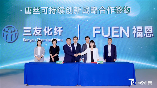 在本次發布會上,唐山三友化纖分別與達利、Circulose達成三方基于“可持續時尚”的戰略合作關系,將依托使用循環再生原料CIRCULOSE®生產的唐絲™循環再生纖維ReVisco™,共同推動環保、減碳事業的發展。唐山三友化纖與福恩達成可持續戰略合作關系,將依托唐絲™環保彩纖和福恩色紡面料紛緯®的優質產品,共同推動服裝產業的發展和綠色環保事業的進步。
