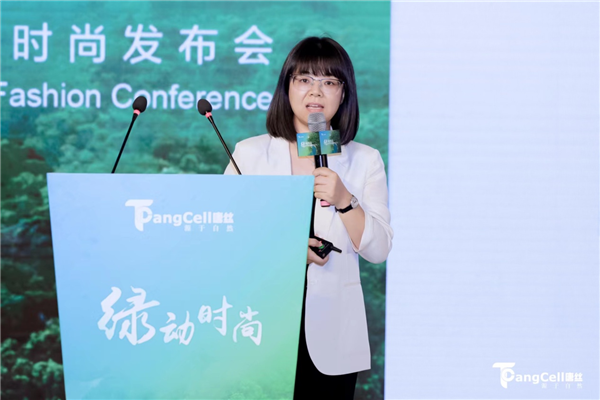 唐山三友集團興達化纖有限公司常務副總經理張東斌以“唐絲緣起——綠動未來”為題分享了唐絲™的誕生、本源特質以及未來發展思路。