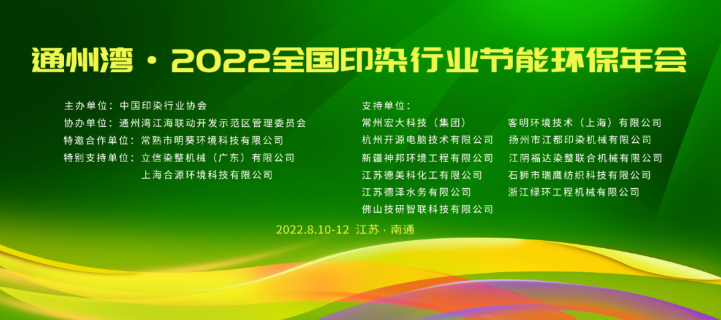 推動(dòng)印染行業(yè)綠色轉(zhuǎn)型,助力實(shí)現(xiàn)“雙碳”目標(biāo)——通州灣?2022全國(guó)印染行業(yè)節(jié)能環(huán)保年會(huì)隆重召開(kāi)