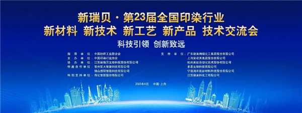 4月15日,由中國印染行業(yè)協(xié)會主辦、江蘇新瑞貝生物科技股份有限公司協(xié)辦的“新瑞貝·第23屆全國印染行業(yè)新材料 新技術(shù) 新工藝 新產(chǎn)品技術(shù)交流會” 在上海隆重召開。