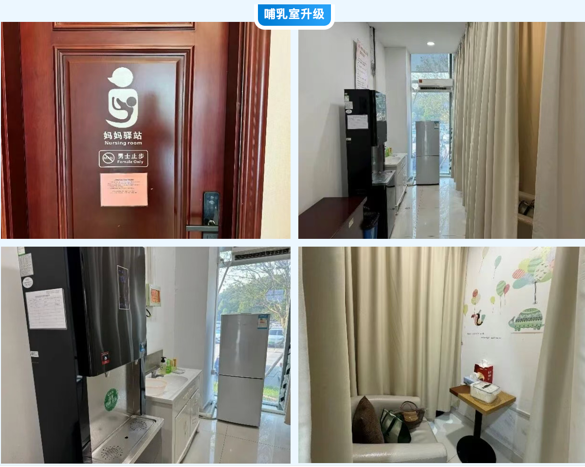 為破解這一局面,今年,企業管理層高度重視,迅速啟動了哺乳室的升級與推廣專項計劃:對所有哺乳室均按照統一的高規格進行配置,內部設有舒適座椅、獨立隔斷以保障私密性,配備了專用冰箱用于存儲母乳、消毒器確保衛生、洗手臺方便清潔,力求為女員工提供一個便捷且舒適的專屬空間。