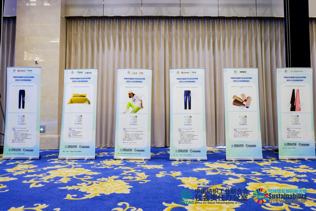 會場兩側(cè)展示了CNTAC-LCA工作組的碳足跡測評案例,這些案例涵蓋了童裝、牛仔褲、西裝、家紡等不同紡織產(chǎn)品的實(shí)測碳足跡,為其他企業(yè)和產(chǎn)品提供了參考和啟示。通過這些案例,與會者可以更直觀地了解碳足跡測評的方法和實(shí)際應(yīng)用,進(jìn)一步推動行業(yè)的低碳發(fā)展。