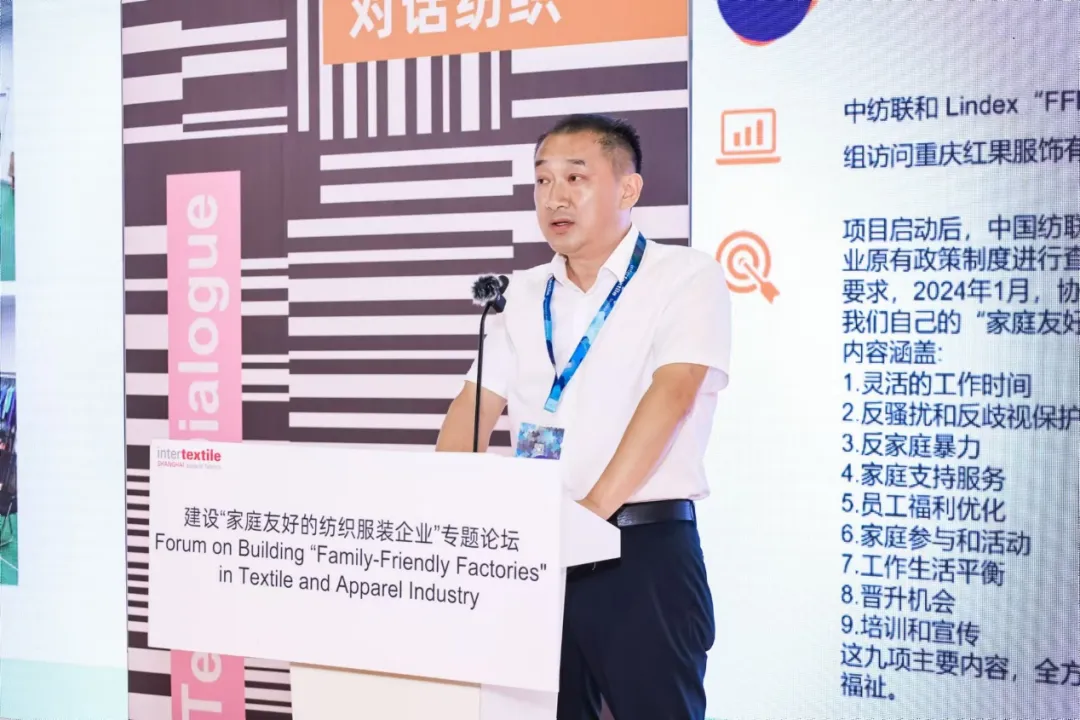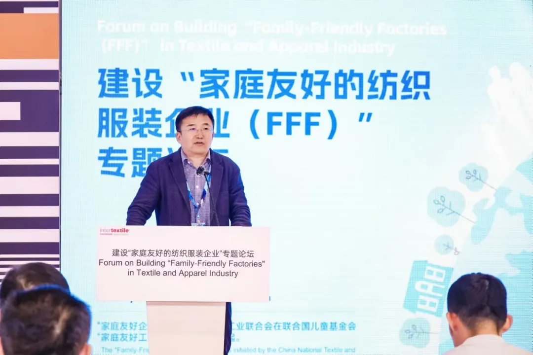 嘉賓分享環節,聯合國兒童基金會駐華辦事處營養項目官畢重軍、香港莉迪斯(香港)有限公司上海代表處可持續發展區域經理周美琴、蘇州美山子制衣有限公司(愛慕子公司)人力行政總監黃麗、全總行業工會紡織工作部部長趙武、中國紡聯FFF項目特邀培訓師孫瑩分別代表工會、品牌方及FFF項目代表、以及行業專家,圍繞當前緊迫的社會需求與企業現狀,深入探討了如何通過合作與創新,推動家庭友好政策在紡織行業的落地與實施。各位嘉賓的發言高屋建瓴,既有對現狀的深刻剖析,也有對未來的美好憧憬。他們提出的資源整合、數字化轉型、優質資源對接等解決方案,為紡織行業的轉型升級提供了寶貴的思路與方向。這些方案不僅有助于實現工作與生活的平衡,更將促進企業與社會的和諧共生,推動紡織行業向更加綠色、可持續的方向發展。