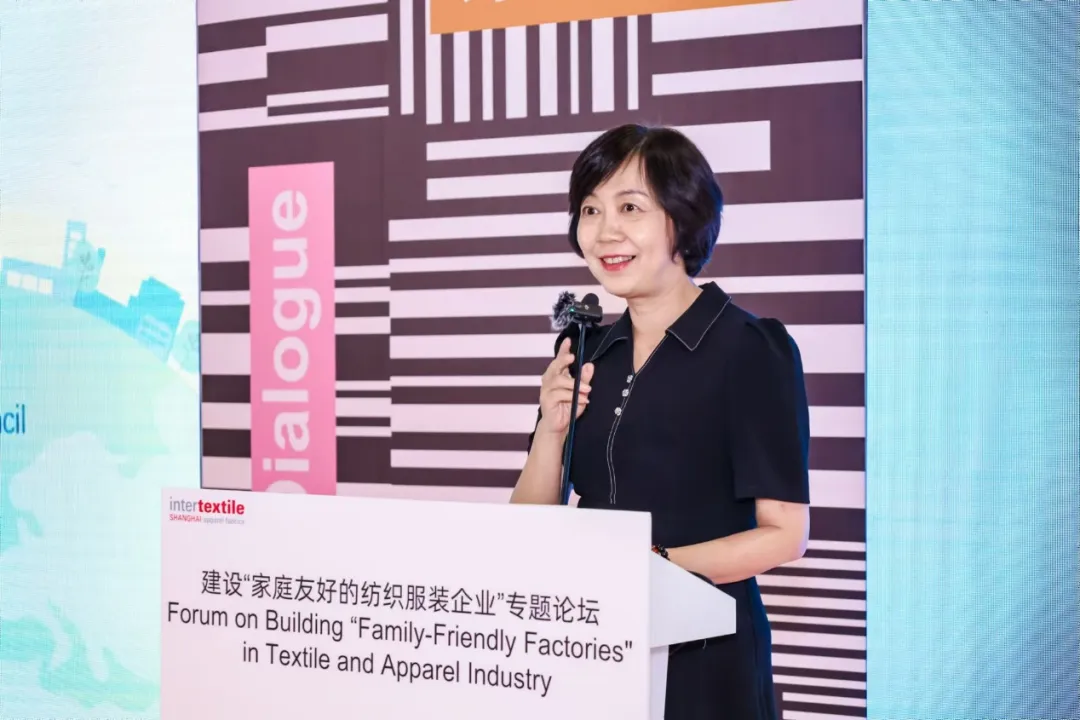 聯合國兒童基金會駐華辦事處合作與創新處處長艾德芙(Derval Usher)表示,自2019年起,中國紡聯與聯合國兒童基金會緊密合作,致力于推動家庭友好型工作場所建設,并于2022年簽訂正式工作計劃。此計劃在中國紡聯會員企業供應鏈中試點,涵蓋工廠實踐、行業指導及宣傳倡導,旨在利用商業力量助力父母平衡工作與育兒。她在發言中還特別強調了兒童早期發展的重要性,倡導性別平等及尊重工人權利,旨在通過多方合作,確保家庭友好政策的可持續實施,特別關注流動就業人員及有殘障兒童家庭的需求。她期待通過分享經驗,推動家庭友好政策的政策倡導、推廣。