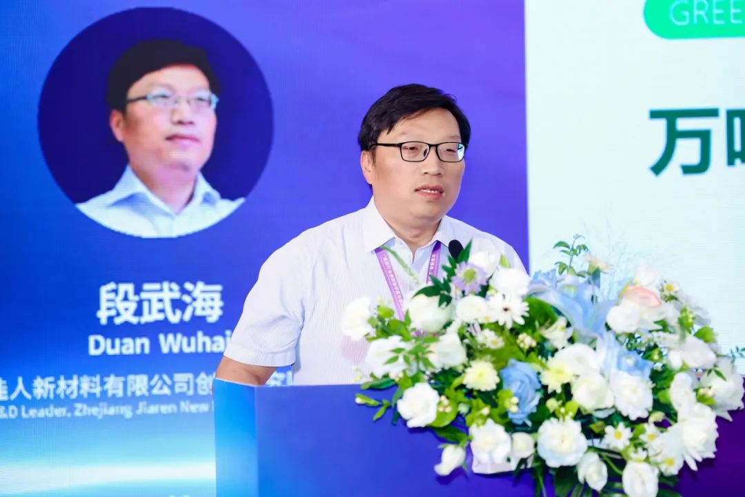 “塑料污染、氣候變化、生物多樣性是全球三大公共環(huán)境問題。在紡織行業(yè),材料化利用率不足3%,廢舊紡織品的循環(huán)再生市場潛力巨大。”浙江佳人新材料有限公司創(chuàng)新研究院負責人段武海以《萬噸級廢舊紡織品高值化應(yīng)用 助力低碳發(fā)展》為題,結(jié)合企業(yè)發(fā)展進行了分享。他介紹,佳人采用分子級循環(huán)再生技術(shù)不僅實現(xiàn)了廢舊聚酯再生高值化應(yīng)用,與原生材料相比,還可實現(xiàn)60%-70%碳減排。目前佳人已實現(xiàn)首家化學法再生萬噸級量產(chǎn),并在國內(nèi)首推“T2T”循環(huán),以此來更大程度地阻止新的化石能源進入供應(yīng)鏈。