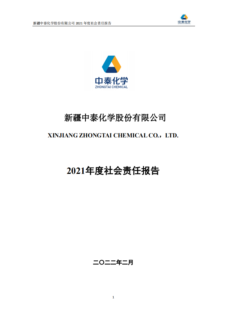 新疆中泰化學股份有限公司2021年度社會責任報告